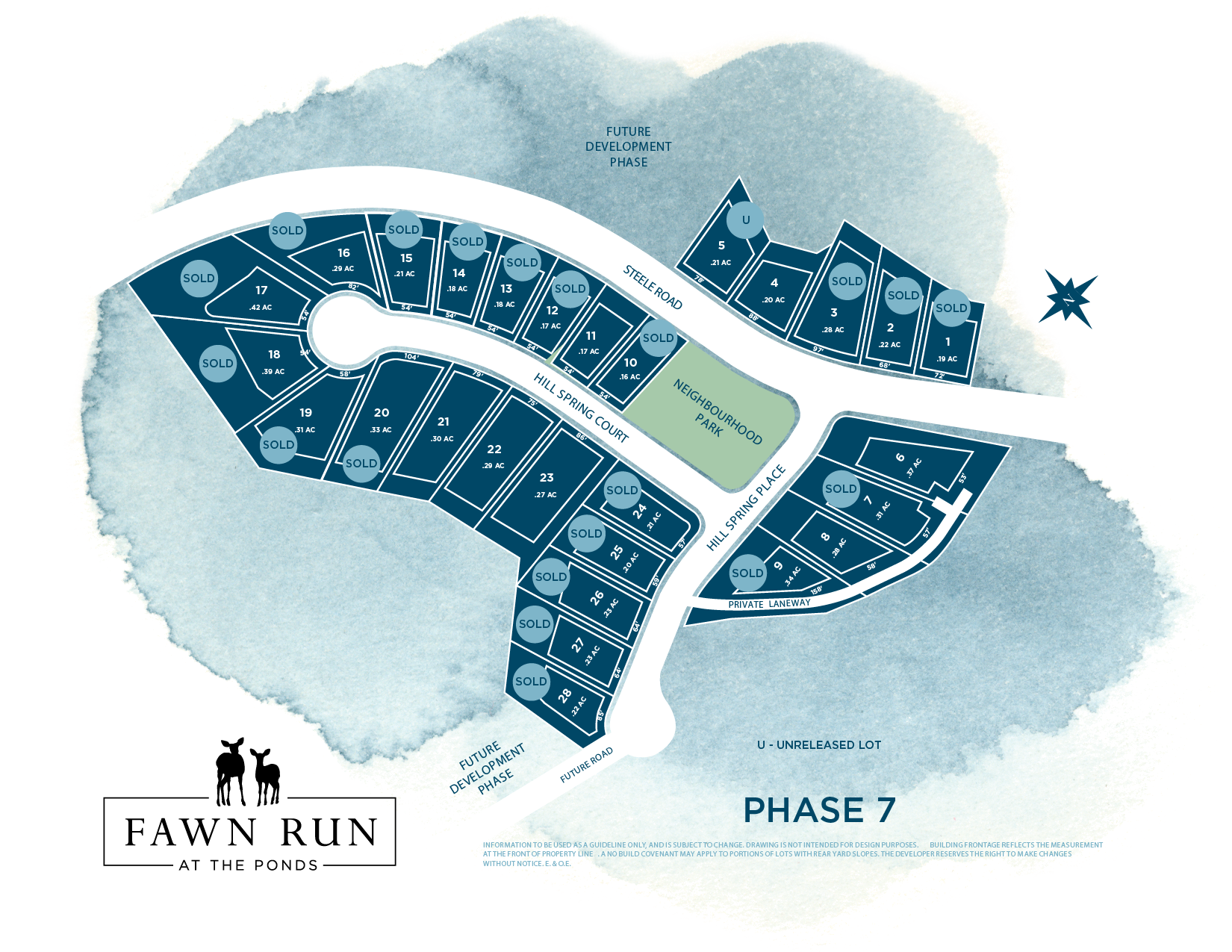 Phase 7 at Fawn Run is currently selling, with several large lots to choose from. In addition to the generous lot size, most of our available lots back onto greenspace.